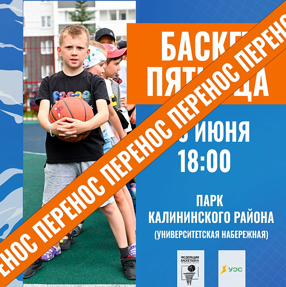 Из-за погодных условий мы переносим Баскет-пятницу на 20 июня — и это будет ещё круче! Ждём всех в следующую пятницу в парке Калининского района — месте, где баскетбол объединяет и заряжает энергией!