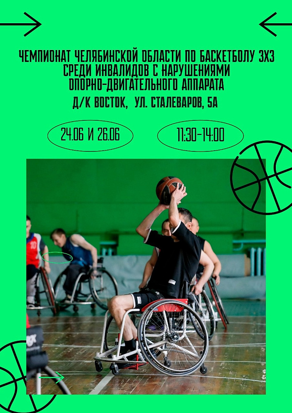 24 июня в ДК «Восток» (ул. Сталеваров, 5а) пройдут жаркие и вдохновляющие игры Чемпионата Челябинской области по стритболу 3x3 среди спортсменов с нарушениями опорно-двигательного аппарата.