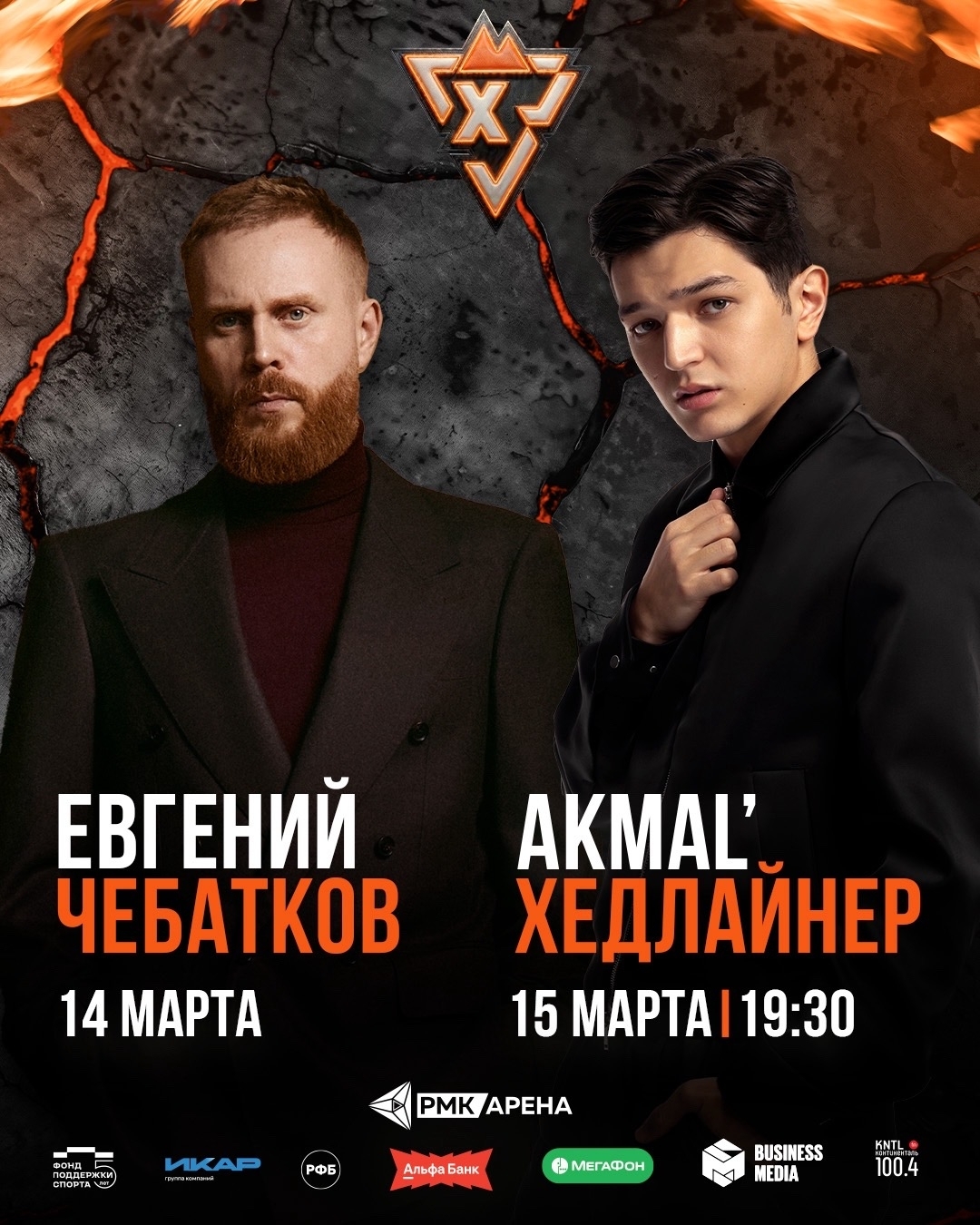 Ведущим вечера 14 марта станет звездный шоумен Евгений Чебатков – мастер стендапов задаст баскетбольный ритм и не даст зрителям заскучать ни на минуту. Вечером 15 марта Akmal' превратит корт в импровизированный концертный зал, где баскетбол и музыка сольются в едином порыве. Подпевайте вместе с нами его хиты «Мир нам завидовал», «Из‑за тебя», «Раневская», «Вдоль дорог».