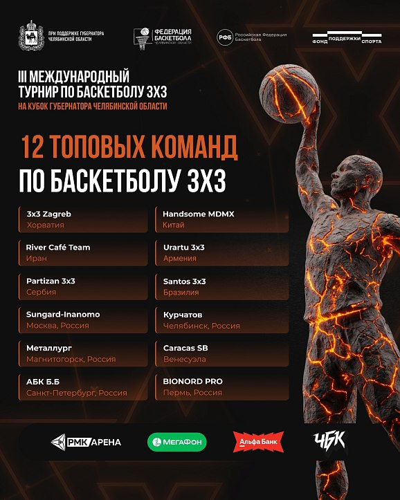 12 топовых команд из 8 стран покажут свое мастерство в баскетболе 3х3 на паркете в Челябинске. Это международный уровень, на который стоит прийти и увидеть вживую технику игру из Америки, Европы, Азии и России.