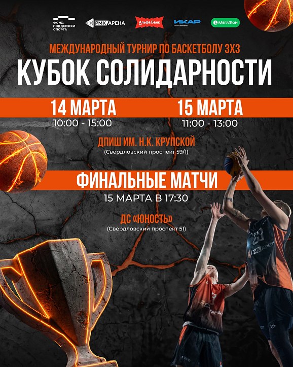 14 марта игры группового этапа пройдут в ДПШ им. Н.К. Крупской, 15 марта – финальные матчи. 17:30 матч за 3 место