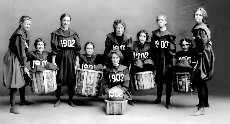 В 1893 году 21 марта состоялся первый в истории женский университетский баскетбольный мачт. Игра прошла в Смит-колледже в Нортгемптоне (штат Массачусетс, США). Интересно, что все двери в спортивный зал были закрыты, т.к. в то время мужчинам считалось неприличным смотреть на женщин, занимающихся спортом. Сами баскетболистки играли в платьях с длинными рукавами и надевали корсеты.