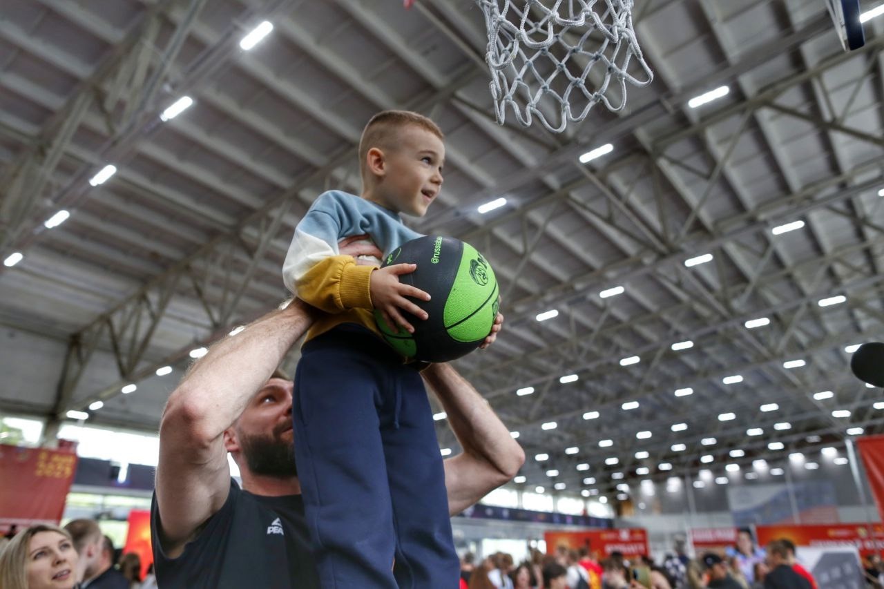 Малышей, которые не могли докинуть сами мяч, баскетболисты поднимали вверх и помогали сделать первый в жизни бросок. Многие родители показывали пример своим детям и с азартом бросали мячи в корзину. Восторг вызывали и баскетбольные элементы – ведение мяча, обводка вокруг себя, эффектные броски в исполнении профессиональных спортсменов.